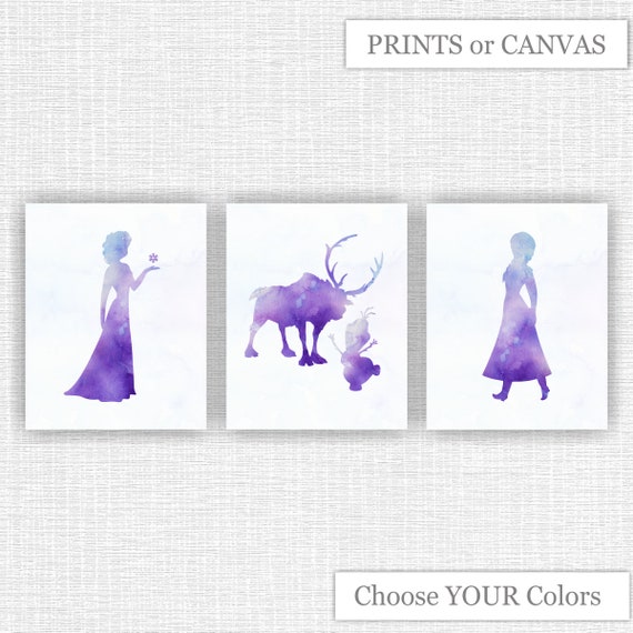 Disney Frozen Watercolor silhouette Wall art Set of 3 Bedroom | Etsy
