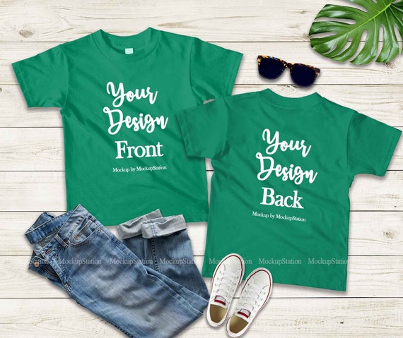 Kids Front Back Kelly Green Tshirt Mockup Toddler Back View Etsy